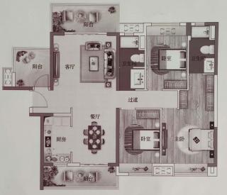 - 3室2厅2卫 平层118.84㎡ 1阳台 有厨房