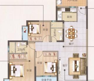 - 3室2厅1卫 平层88㎡ 有厨房