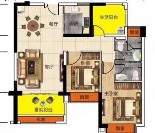 - 3室2厅2卫 平层91.5㎡ 2阳台 有厨房
