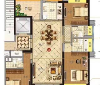 - 3室2厅2卫 平层123㎡ 有厨房