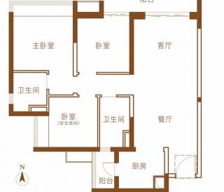 - 3室2厅2卫 平层100㎡ 2阳台 有厨房